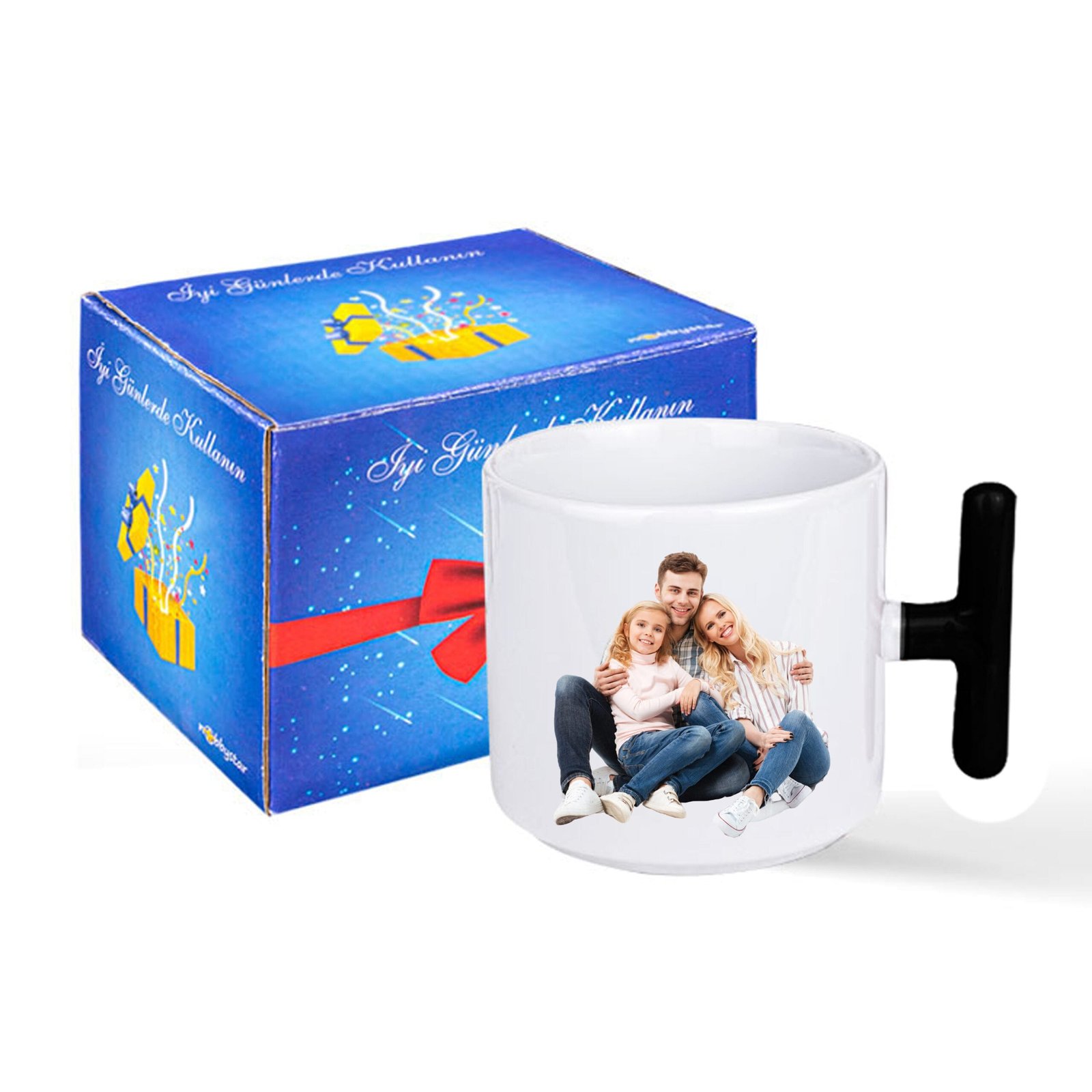 Siyah T kulplu Kişiye Özel Siyah T Kulp Kupa Bardak, hem şık tasarımı hem de duygusal anlamıyla sıradan hediyelerden ayrılıyor. Bu nedenle, sevdiklerinle paylaştığın en özel anları, bu farklı ve dikkat çekici kupa üzerinde yaşatabilirsin. Renkli detaylarıyla öne çıkan bu kupa, fotoğraf baskısıyla tamamen sana özel hale gelir.